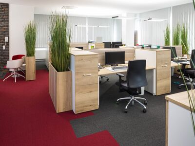 2017 haben wir in Neuss den roten Teppich ausgerollt. Neben repräsentativem Empfangsmobiliar, Begrünung und ergonomischer Büroeinrichtung, wurde die komplette Raumaufteilung, inklusive aller Arbeitsabläufe, durch Systemtrennwände von Grund auf neu strukturiert. Das Ergebnis schafft eine angenehme, wohnliche Arbeitsatmosphäre.
