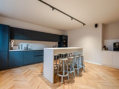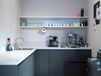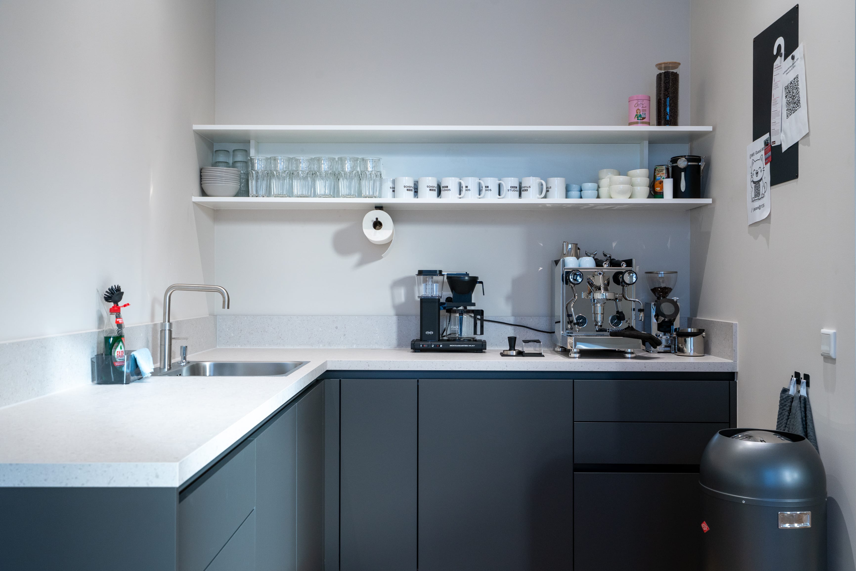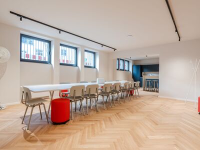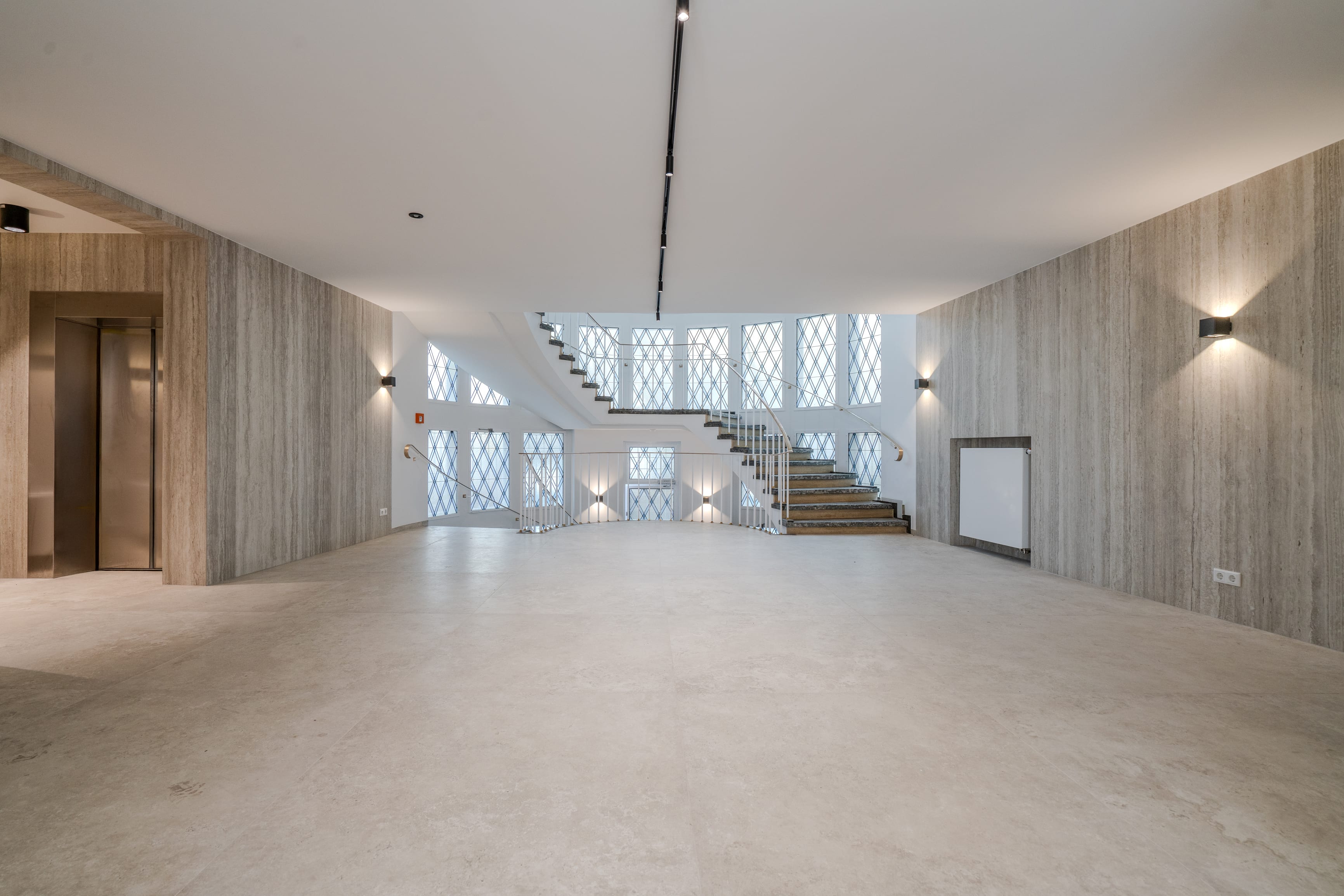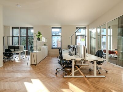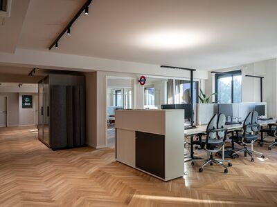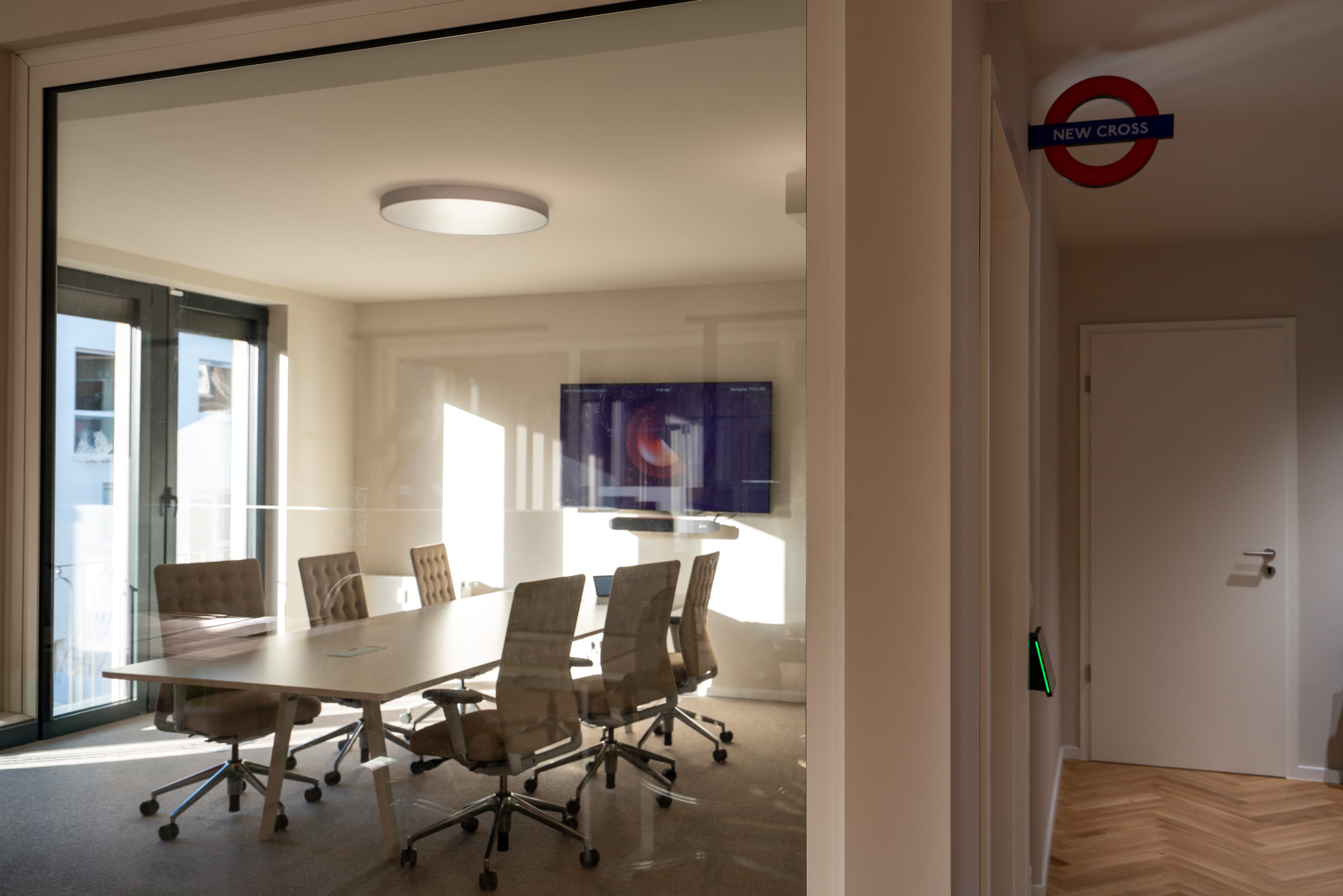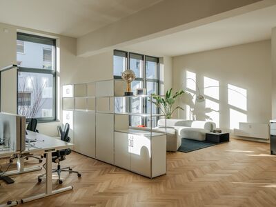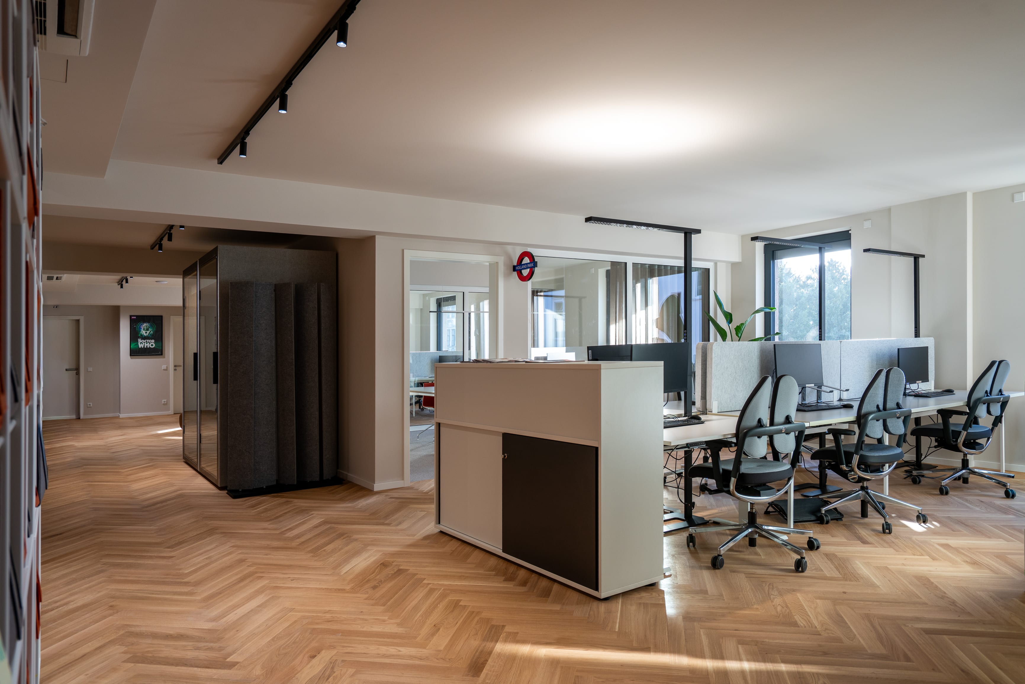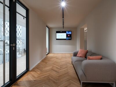 Aus diesen Erkenntnissen entwickelten wir ein ganzheitliches Raumkonzept für vier Etagen. Entstanden ist eine elegante, hochwertige Arbeitswelt mit klarer Struktur, durchdachter Zonierung und modernen Arbeits- sowie Meetingbereichen. Rückzugsorte für konzentriertes Arbeiten stehen ebenso im Fokus wie kommunikative Flächen für Austausch und Redaktion. Gestalterisch verbindet das Konzept zeitlose Materialien mit gezielt gesetzten Highlights, die auf die Markenidentität einzahlen – mit punktuell charmantem Augenzwinkern in Richtung der britischen Wurzeln. Das Ergebnis ist eine stimmige, repräsentative und zugleich lebendige Arbeitsumgebung, die die Unternehmenskultur von BBC Germany sichtbar macht und Raum für zukünftige Entwicklungen bietet.