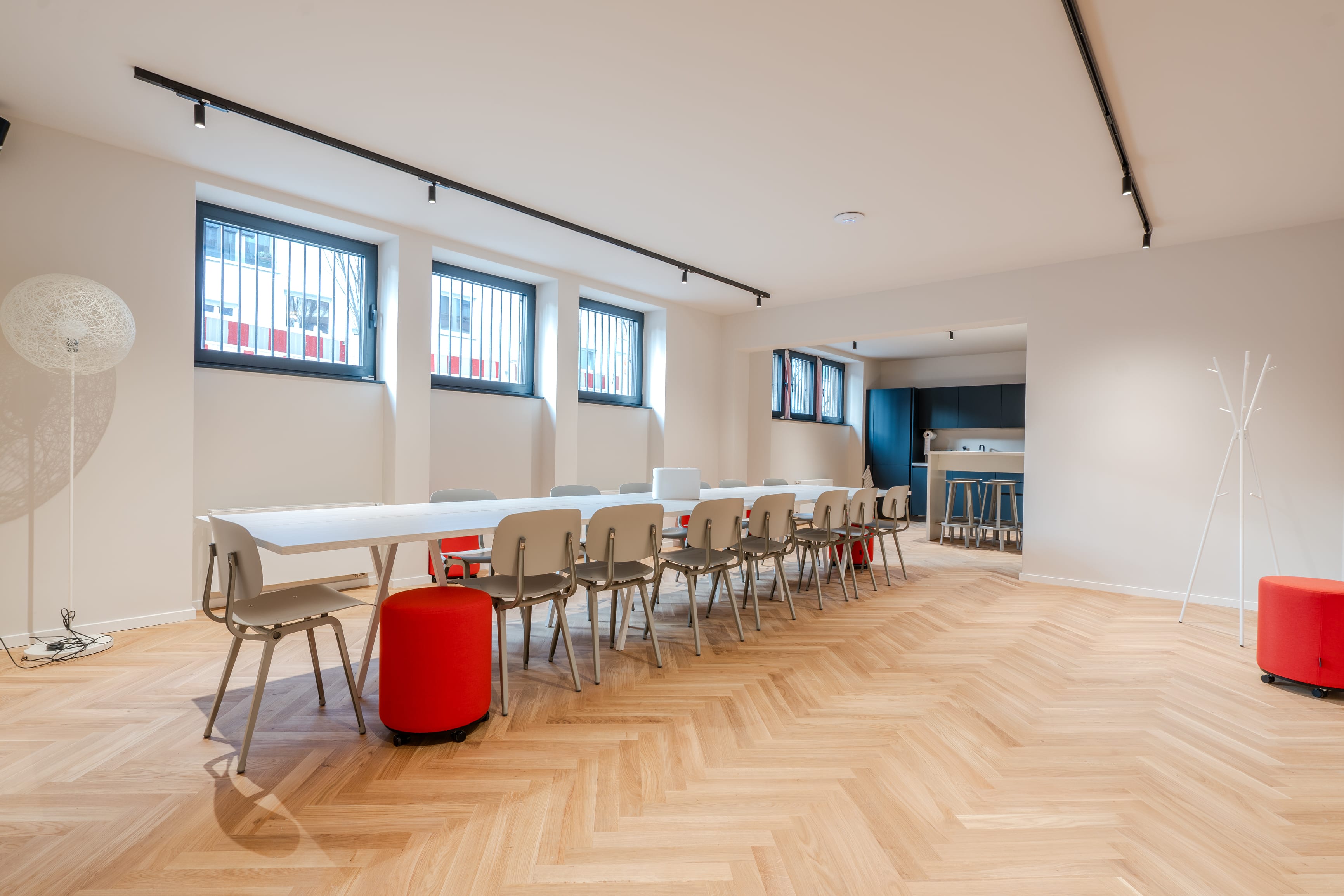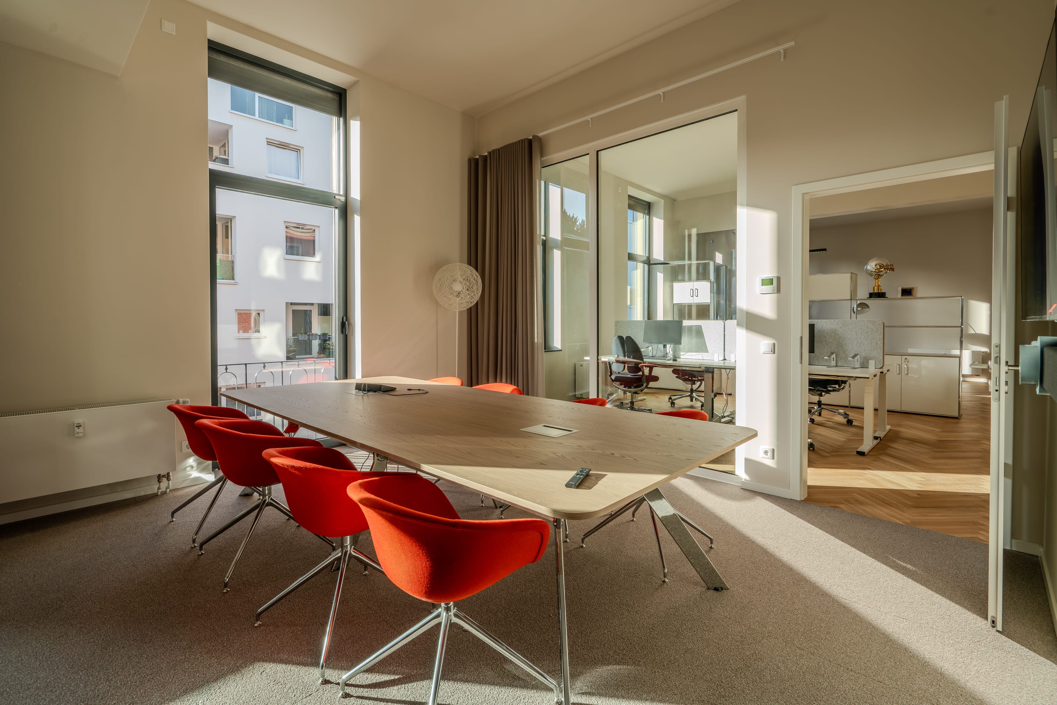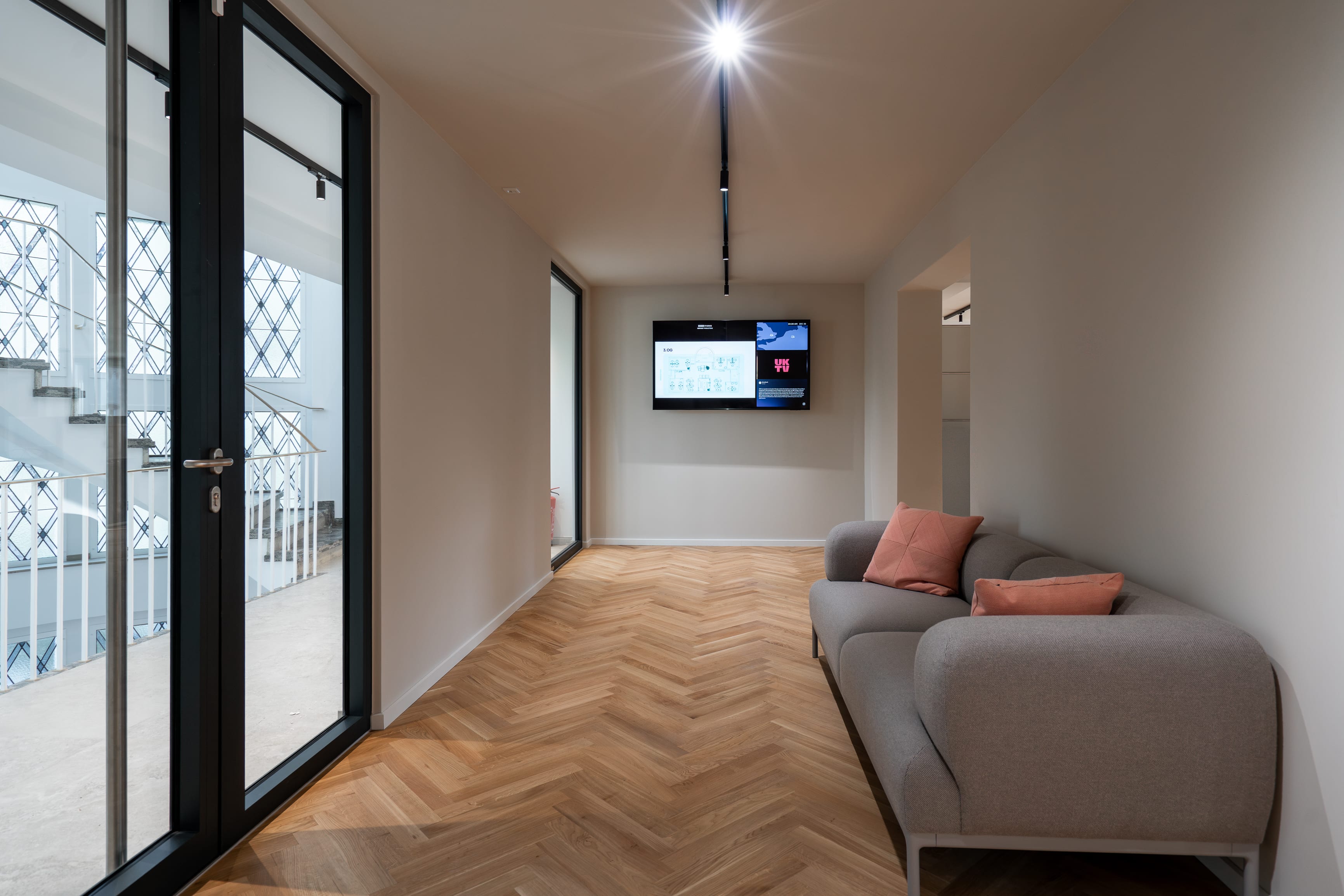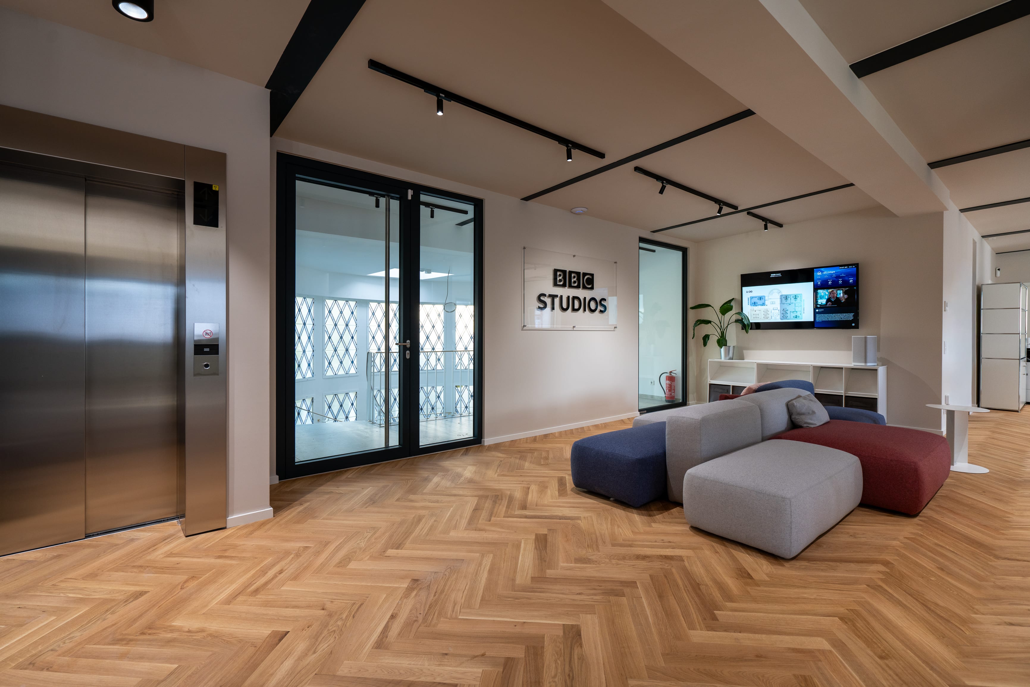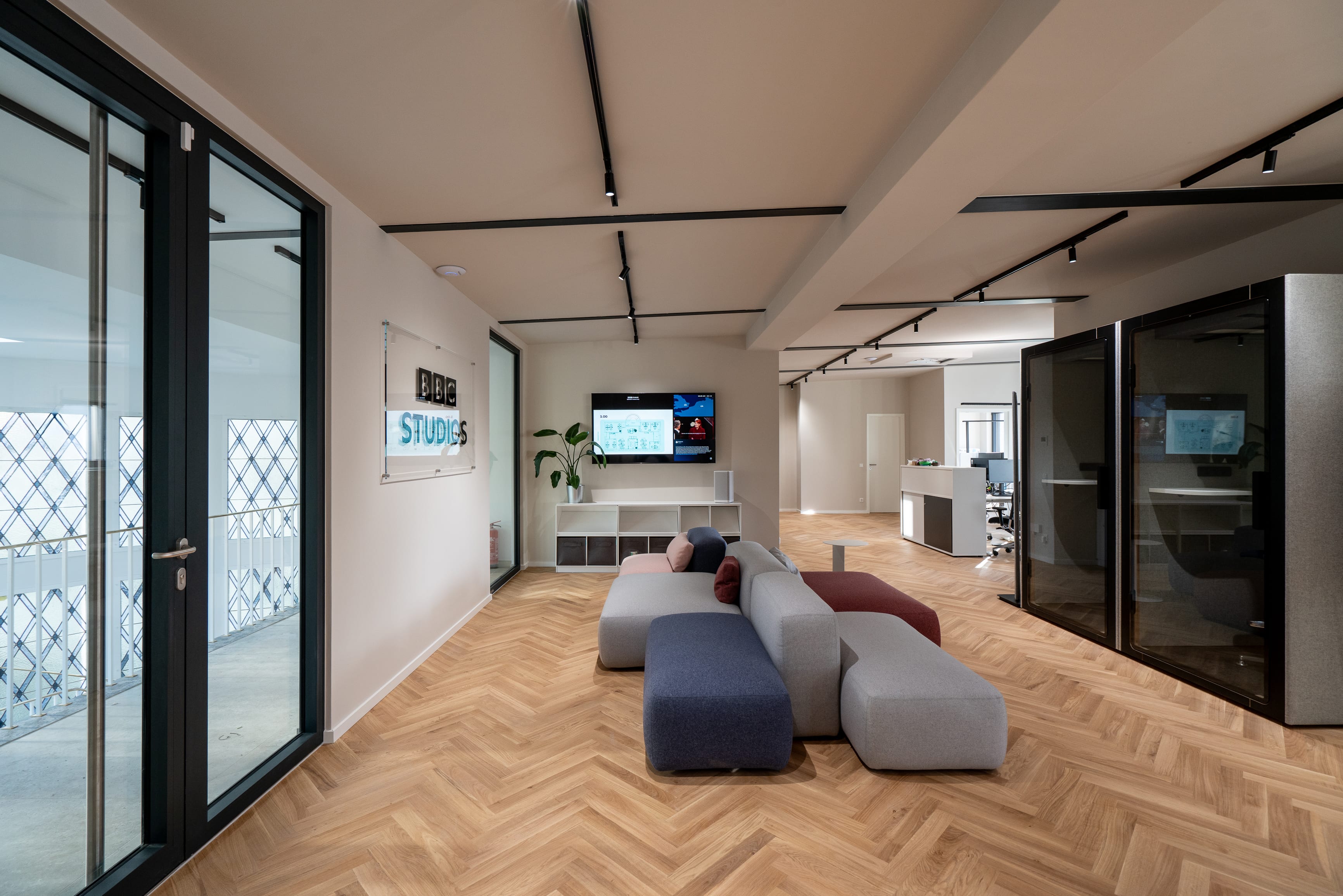 Für BBC Germany durften wir den Umzug aus zwei bestehenden Standorten in ein gemeinsames, neues Objekt begleiten und die neue Heimat der BBC Germany in Köln gestalten. Das Gebäude, ein Haus aus den 1950er Jahren, bot dabei nicht nur architektonischen Charakter, sondern auch die Chance, gewachsene Strukturen neu zu denken und unter einem Dach zusammenzuführen. Der Prozess begann mit intensiver Beteiligung der Mitarbeitenden: In Workshops, digitalen Umfragen und Interviews mit den Führungskräften haben wir Bedürfnisse, Erwartungen und Arbeitsweisen detailliert analysiert. Ziel war es, eine Arbeitsumgebung zu schaffen, die Identität stiftet, Zusammenarbeit fördert und zugleich den hohen professionellen Anspruch des Unternehmens widerspiegelt.