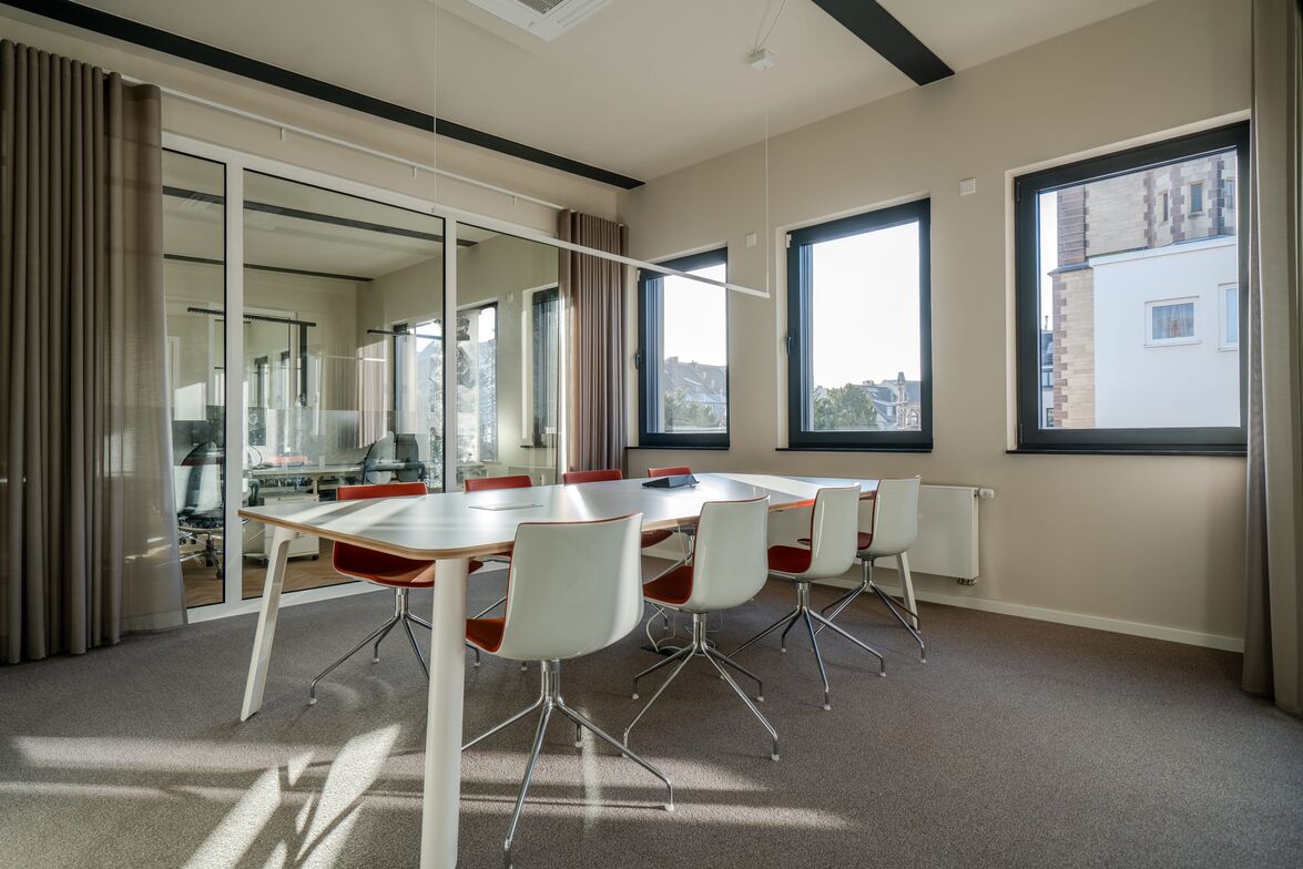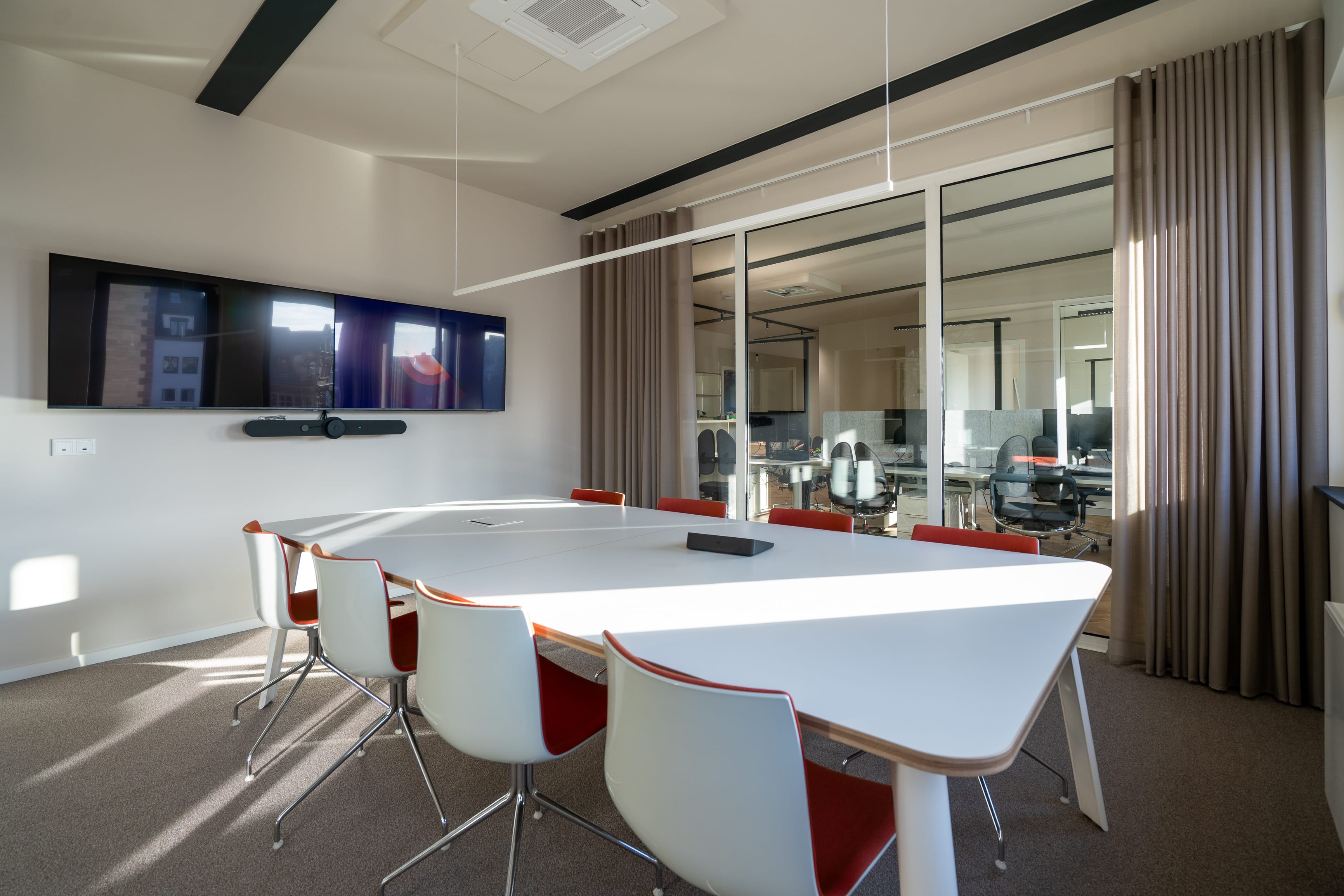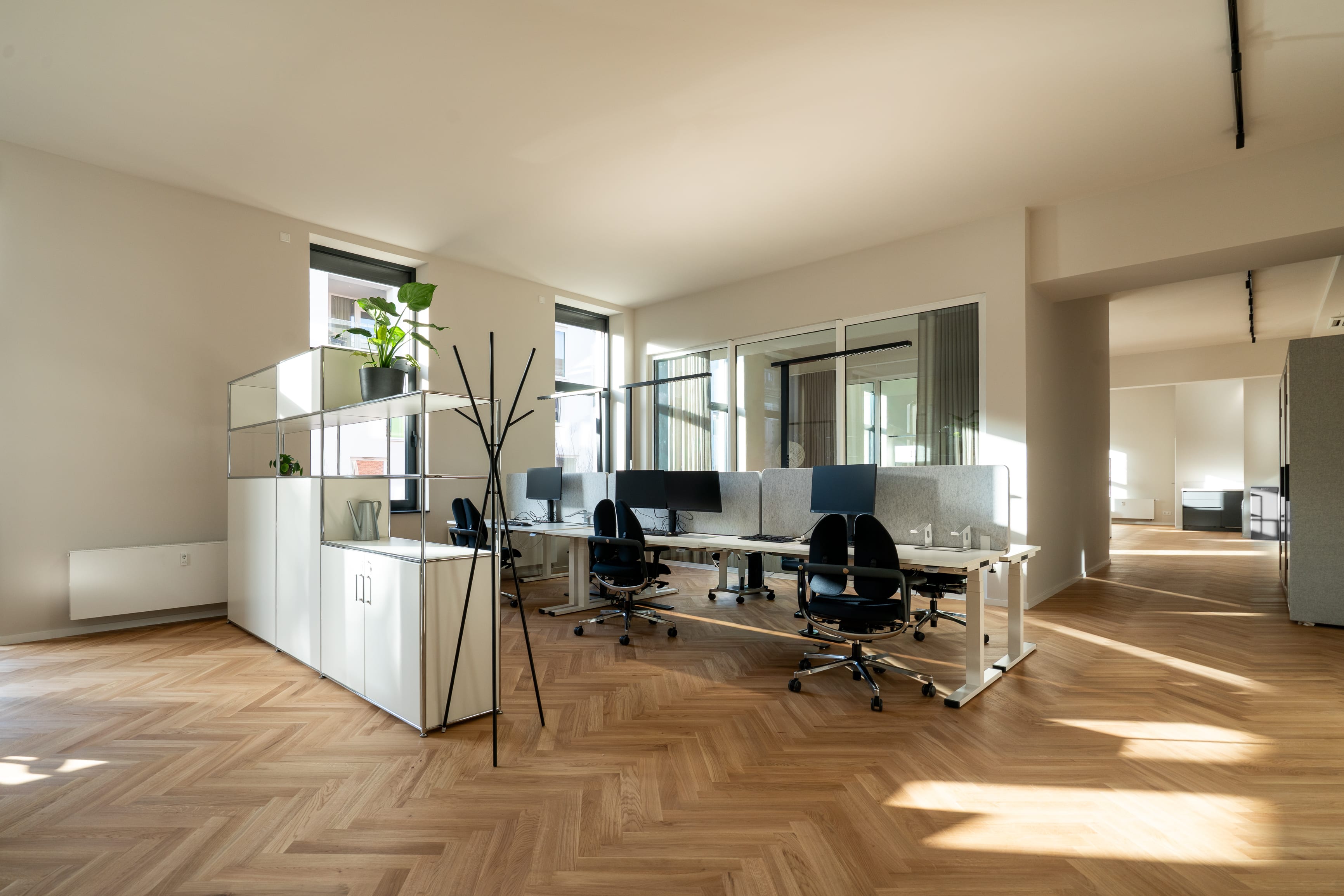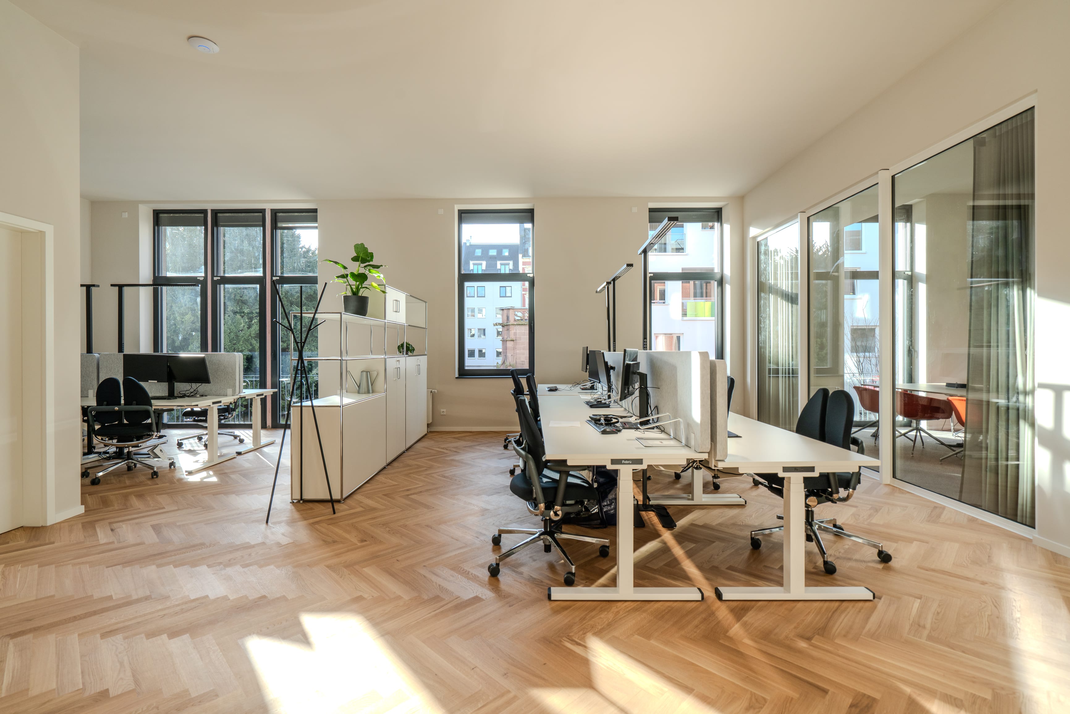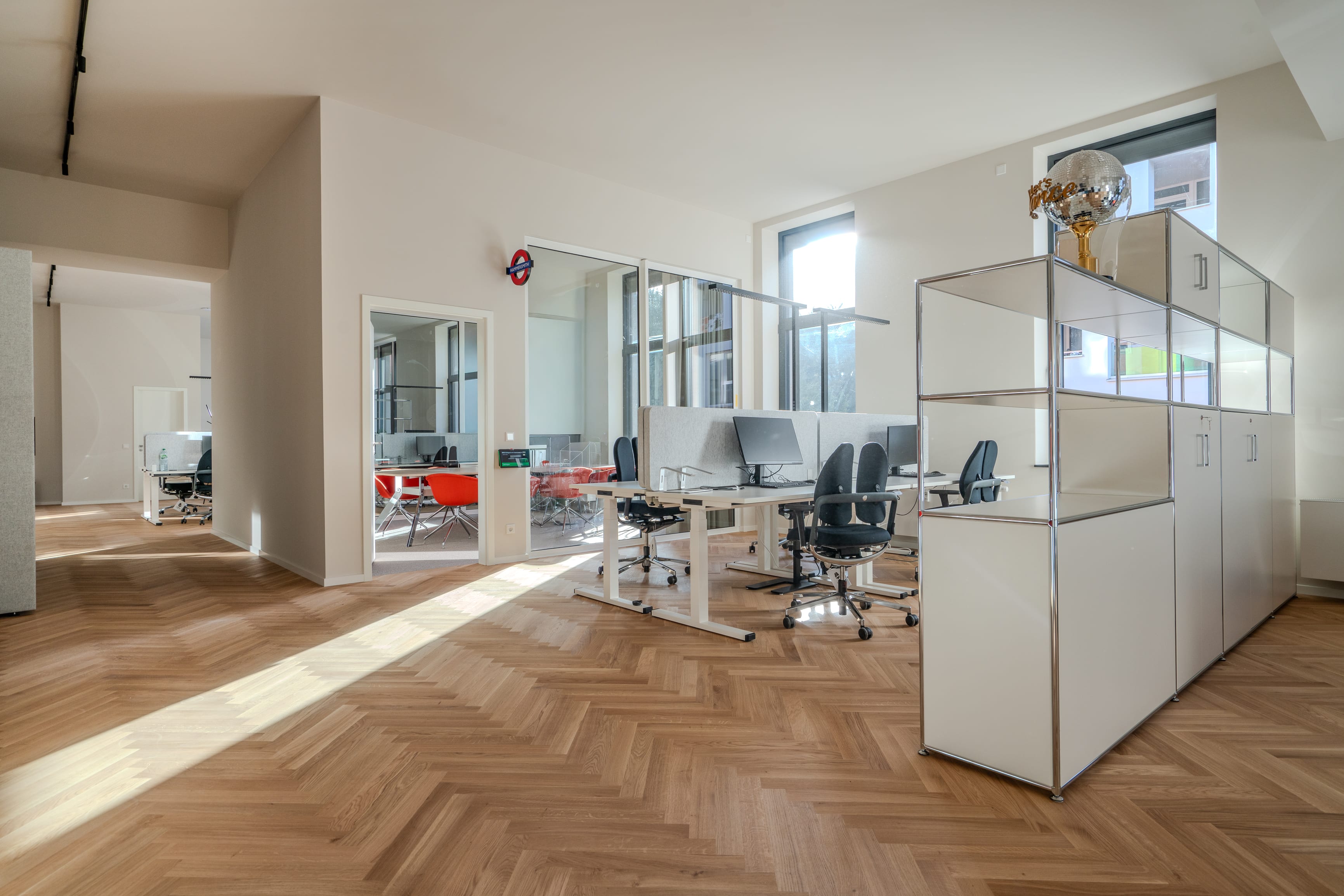 Für BBC Germany durften wir den Umzug aus zwei bestehenden Standorten in ein gemeinsames, neues Objekt begleiten und die neue Heimat der BBC Germany in Köln gestalten. Das Gebäude, ein Haus aus den 1950er Jahren, bot dabei nicht nur architektonischen Charakter, sondern auch die Chance, gewachsene Strukturen neu zu denken und unter einem Dach zusammenzuführen. Der Prozess begann mit intensiver Beteiligung der Mitarbeitenden: In Workshops, digitalen Umfragen und Interviews mit den Führungskräften haben wir Bedürfnisse, Erwartungen und Arbeitsweisen detailliert analysiert. Ziel war es, eine Arbeitsumgebung zu schaffen, die Identität stiftet, Zusammenarbeit fördert und zugleich den hohen professionellen Anspruch des Unternehmens widerspiegelt.