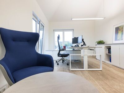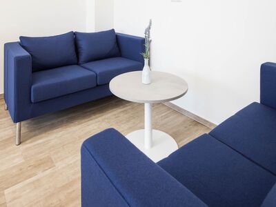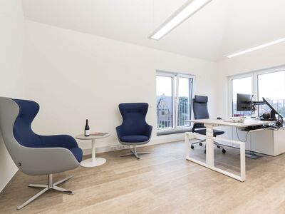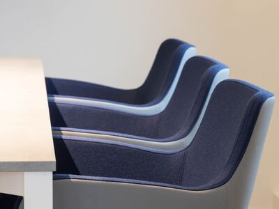 Die neue Büroeinrichtung sollte zeitlos und elegant sein – hochwertig und modern, wie das Unternehmen selbst. Die gewünschte Akzentfarbe Blau wurde für verschiedene Softseating Lösungen in Szene gesetzt und stellt den perfekten Kontrast zu den sonst sehr cleanen, weißen Büromöbeln.