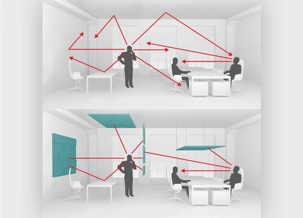 Um die Konzentrationsfähigkeit der Mitarbeiter zu verbessern und ungestörtes Arbeiten zu ermöglichen, ist eine Geräuschregulierung durch akustische Maßnahmen ausdrücklich zu empfehlen. Dabei werden wirksame Akustikbilder, Trennwände, Deckensegel oder Absorber in die Büroeinrichtung integriert, um so den Geräuschpegel zu minimieren. Akustische Elemente sind besonders bei Großraumbüros zu berücksichtigen, um jedem Mitarbeiter optimale Arbeitsbedingungen zu gewährleisten. Ob als Hingucker oder ganz dezent: Fördern Sie mit akustischer Optimierung den Erfolg Ihres Unternehmens.