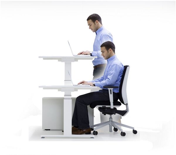 Ungefähr ein Drittel aller Fehltage im Büro sind auf Rückenschmerzen zurückzuführen. Um dem Rücken bewegliche Abwechslung zu ermöglichen, eignen sich dynamische Sitz-Steh-Arbeitsplätze optimal. Hier wird der Arbeitsplatz mit einer höhenverstellbaren Tischplatte ausgestattet, die entweder manuell oder elektrisch verstellt werden kann. Der regelmäßige Wechsel zwischen Stehen und sitzen fördert die Nährstoffversorgung der Bandscheibe, trainiert die Rückenmuskulatur, verbessert die Atmung und Konzentration.