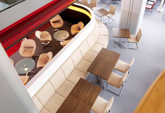 Ob in der Teeküche der Abteilung oder in der Cafeteria des Unternehmens, wir setzen Ihre Anforderungen und Wünsche maßgeschneidert für Sie um – durchdacht gestaltet, ergonomisch möbliert und mit mobiler Technik vernetzt. Die Grenze zwischen Arbeit und Erholung darf und soll dabei verschwimmen!