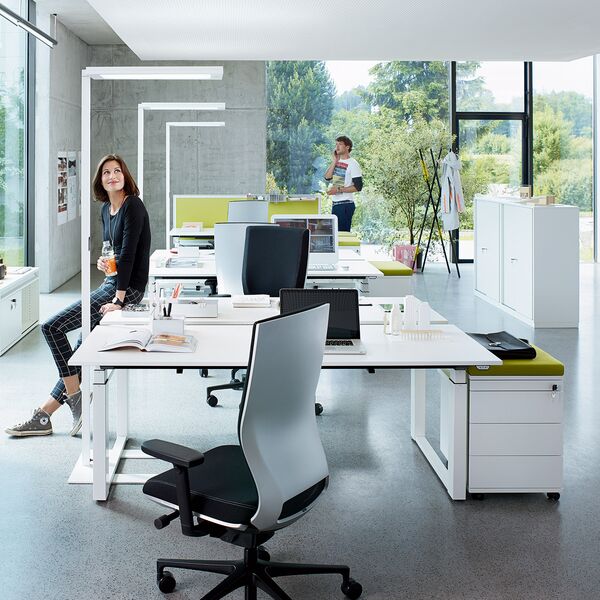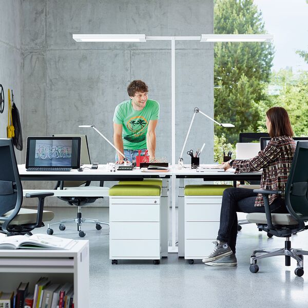 Glücklich, wer am Fenster sitzen kann. Denn Tageslicht versorgt uns mit Vitamin D und ist gut für die geistige Gesundheit. Das ist insbesondere in Großraumbüros natürlich nicht jedem vergönnt. Umso wichtiger, dass vorhandene Fenster nicht zusätzlich abgeschottet oder durch Möbel verstellt werden. Auch Tageslichtlampen sind geeignet, ein besseres Arbeitsklima zu schaffen.